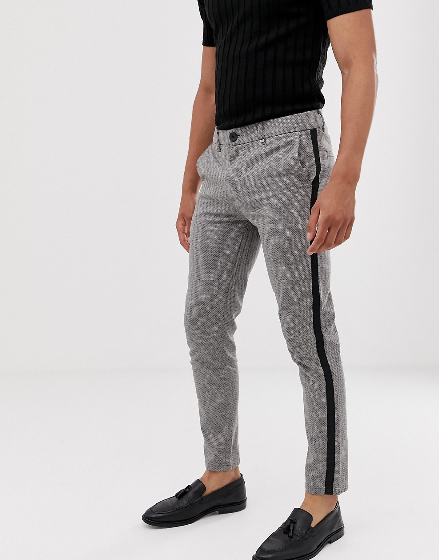 É o estilo das calças justas, na versão verão, costuradas em algodão leve ou linho. O modelo, igualmente estreito em todo o comprimento, é usado com a parte inferior voltada para cima até o meio da perna. O skinny cortado tem 7/8 de comprimento e é adequado apenas para os homens mais altos, uma vez que reduzem visualmente o comprimento da perna.