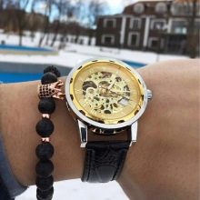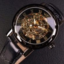 - Tipo de execução... Os relógios-esqueletos masculinos são a versão mais popular. Eles são confortáveis, parecem interessantes, enfatizam o estilo moderno de seu proprietário. Os relógios de bolso esqueleto são adequados apenas para homens que preferem os clássicos em tudo - desde cortes de cabelo a roupas. O design do acessório é sempre individual e o aspecto é impecável.