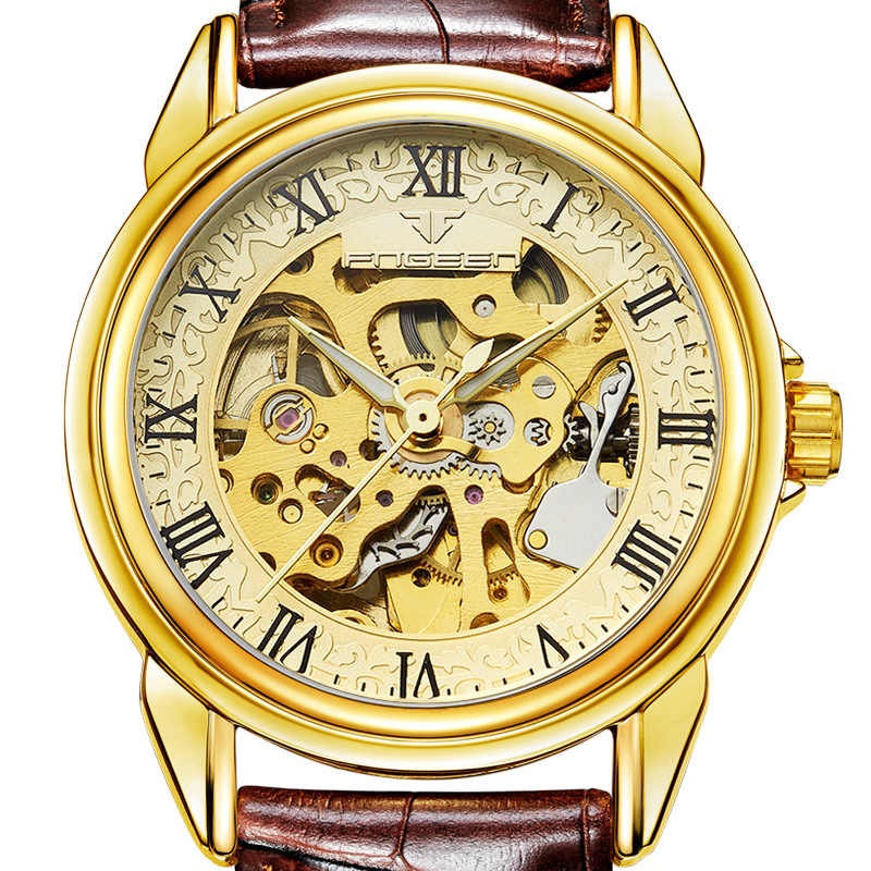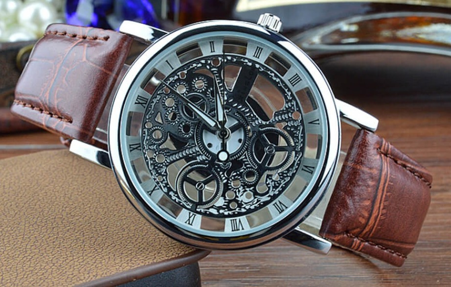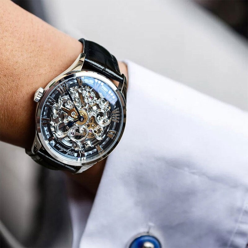 Os relógios de esqueleto masculino são geralmente feitos com pontes e platina, 70% mais finos do que a versão clássica.