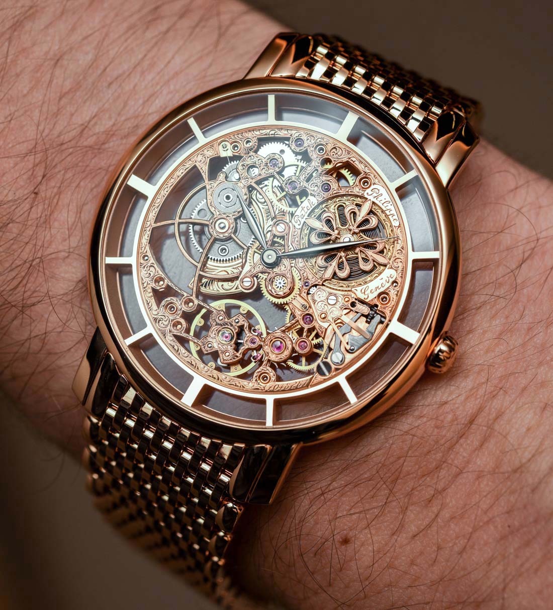 Uma marca conhecida em todo o mundo. Tem criado relógios com sucesso há mais de 180 anos. A marca tem uma relação especial com os esqueletos. Esqueleto de Complicações com uma pulseira de ouro branco parece uma verdadeira obra-prima. O modelo é à prova d'água, resiste a imersão até 30 m, reserva de marcha de 43 horas, corda manual.