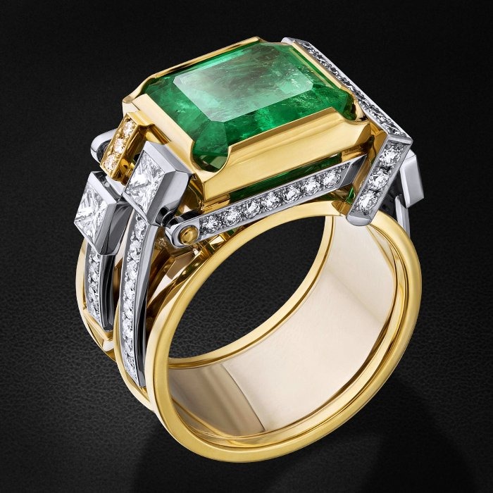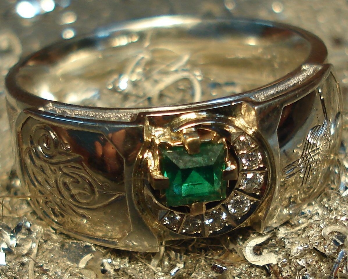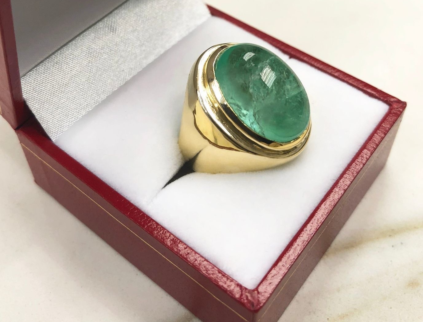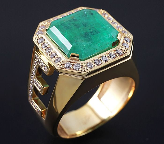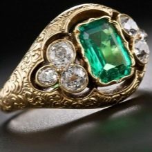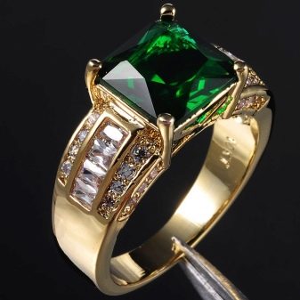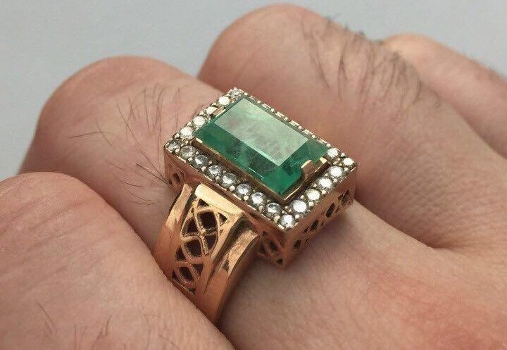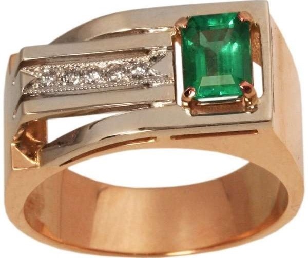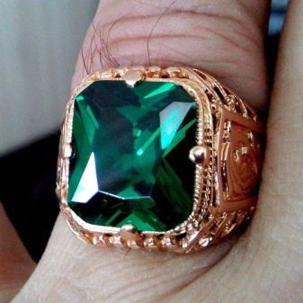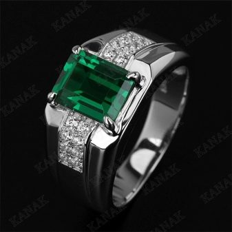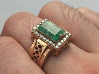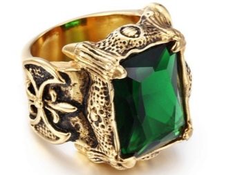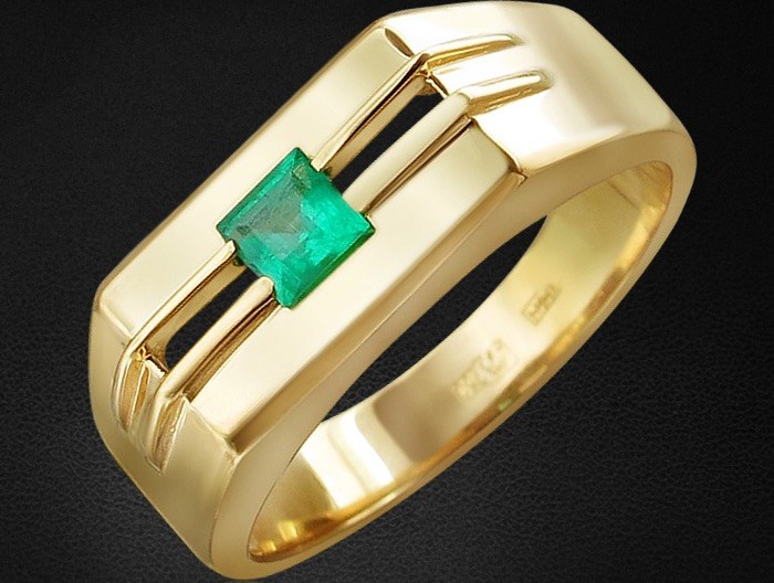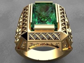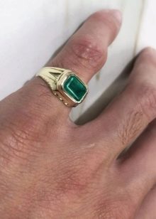 Anéis de ouro masculinos com esmeralda: opções de design e segredos de cuidados