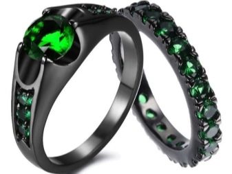 - Alianças de casamento... Freqüentemente, esses acessórios para a noiva e o noivo são combinados e têm características semelhantes. Via de regra, o anel de um homem é maior e mais massivo. Um par desses itens com pedras preciosas também pode ser um presente para um casamento esmeralda (55 anos de casamento).