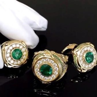 Os anéis masculinos de ouro com esmeralda combinam bem com abotoaduras feitas do mesmo metal. Esse conjunto é adequado até mesmo para uma ocasião especial. Além disso, há outra combinação ganha-ganha - anel e relógio em estilo clássico... O anel também pode ser usado como um acessório independente, especialmente se uma pedra grande e proeminente for usada nele. Um sotaque tão brilhante não requer quaisquer acréscimos.