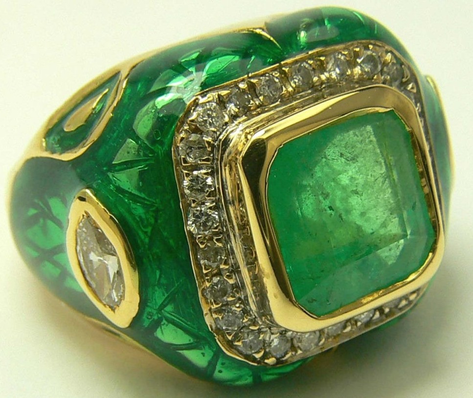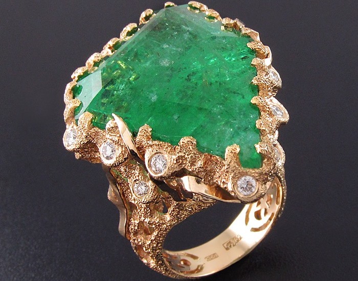 As esmeraldas não toleram o contato com produtos de limpeza abrasivos e vários produtos químicos. Isso também se aplica a cosméticos e produtos de perfumaria. Além disso, não mergulhe o anel em água muito quente.