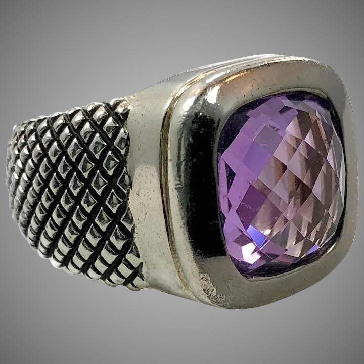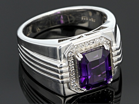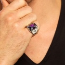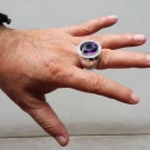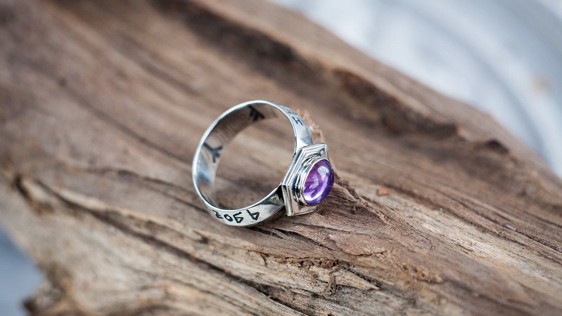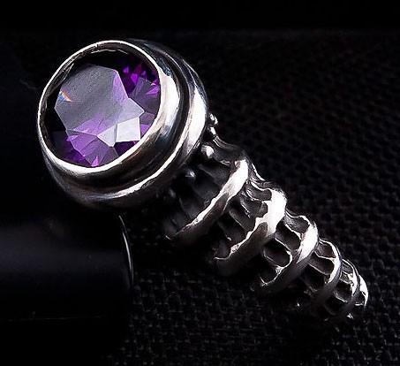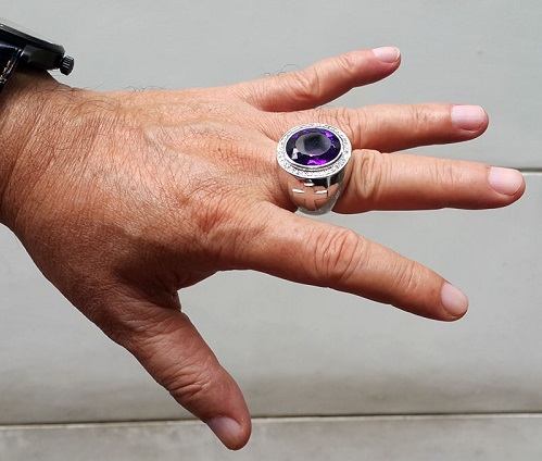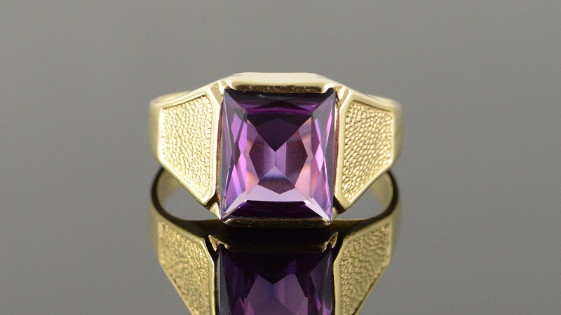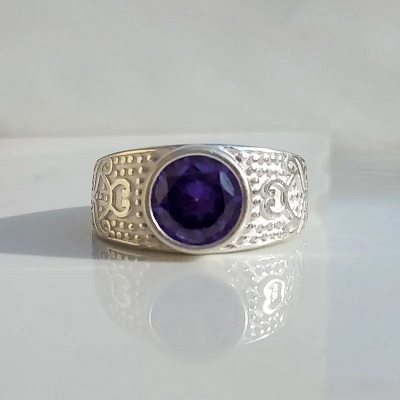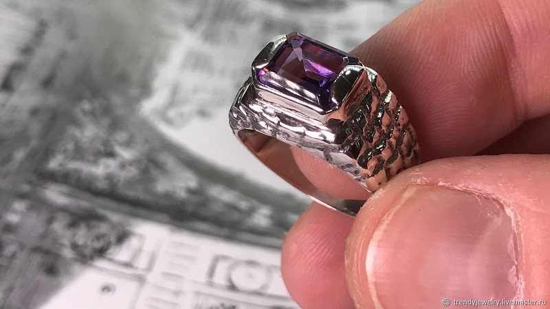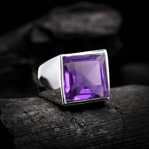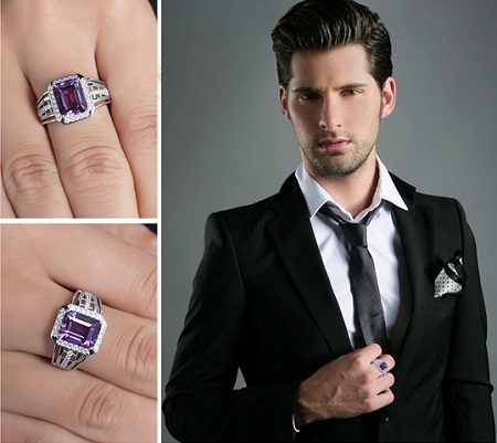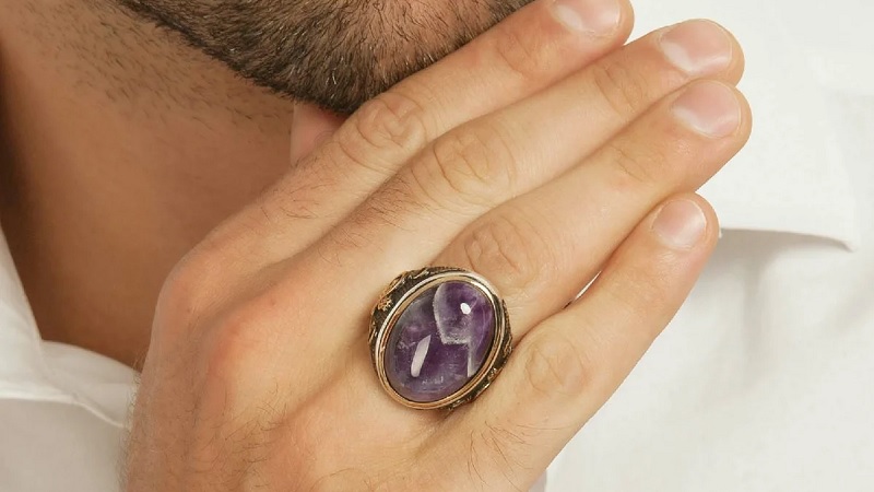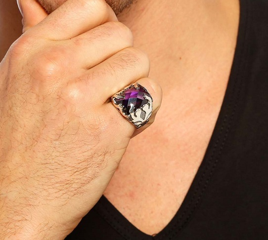 Um anel com inserções de ametista é uma joia estilosa que faz com que o homem pareça respeitável.