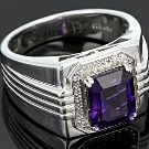 A esmagadora maioria dos anéis masculinos com ametista tem um desenho lacônico. Junto com outros minerais, esta pedra tem a capacidade de acumular energia. Ele é considerado um talismã de fidelidade familiar. Os anéis masculinos são mais massivos do que os femininos. Normalmente, eles são decorados com uma grande pedra de cor escura. Esses acessórios complementam perfeitamente o estilo empresarial, enfatizam o laconicismo da imagem.