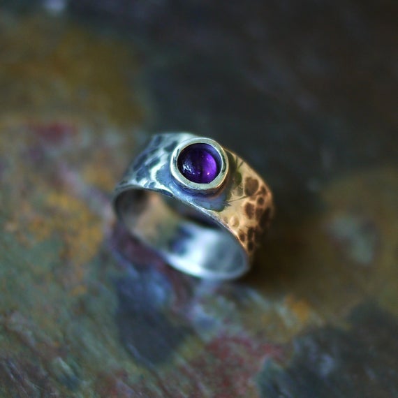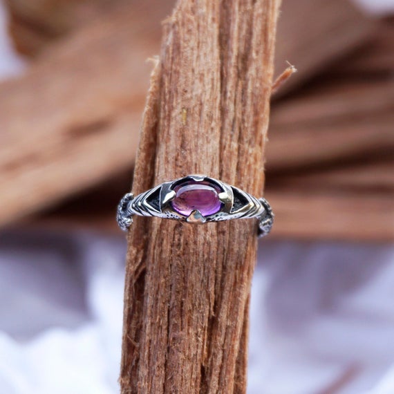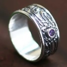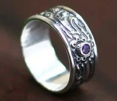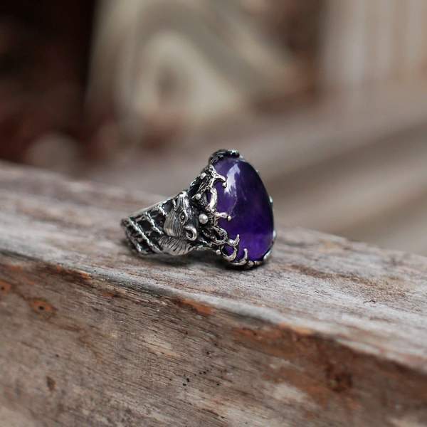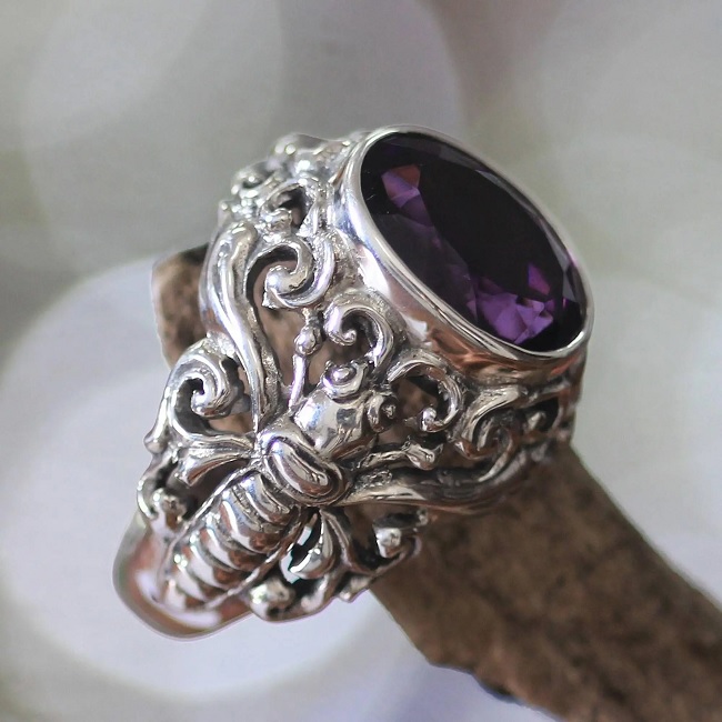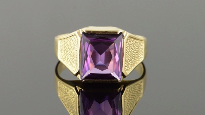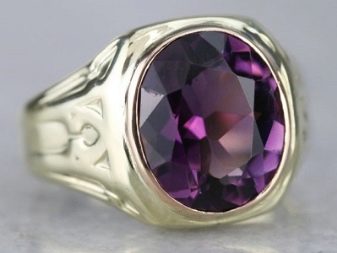 Os anéis com ametista são apreciados não apenas pelo belo sexo, mas os homens também os escolhem. Esta pedra tem uma cor original, atribuindo-lhe propriedades místicas.