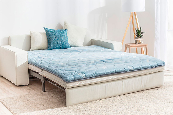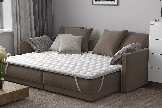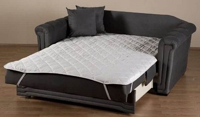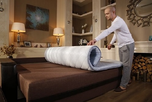 No sofá é colocado um colchão ortopédico para dormir (também existem outros nomes - "topper" ou "colchão fino"), o que torna o local de dormir mais rígido. E isso tem um efeito benéfico na condição da coluna.