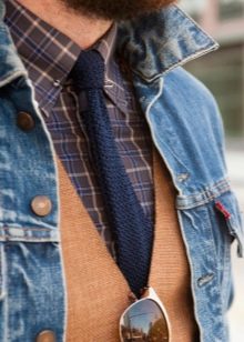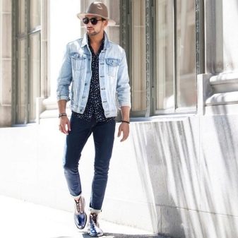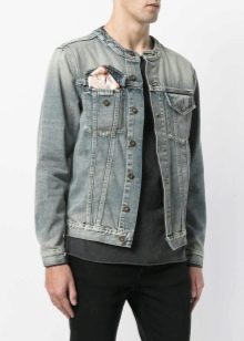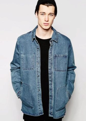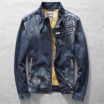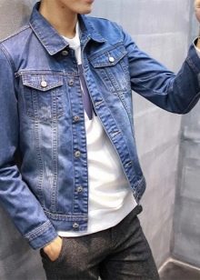 Uma jaqueta jeans azul padrão pode ser comprada por qualquer homem, independentemente de sua categoria de idade e guarda-roupa preferido. Essas roupas ficam melhor em um laço de várias camadas, adequado para usar sob um casaco ou jaqueta com isolamento. Mas o modelo superdimensionado não é adequado para um homem idoso ou muito magro. Isso também deve ser levado em consideração.