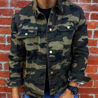- Militares. Este é um tecido denim camuflado, na maioria dos casos equipado com laços e botões grandes. Também pode ter listras.