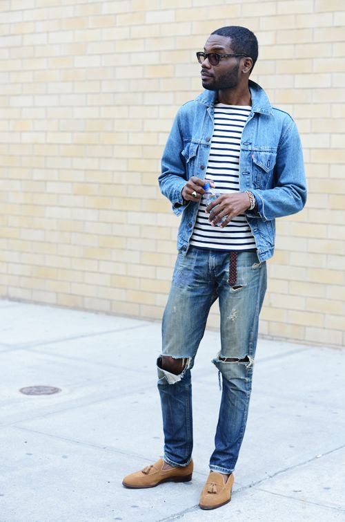 - Para jeans com arranhões e buracos, um estilo de sapato solto é adequado.
