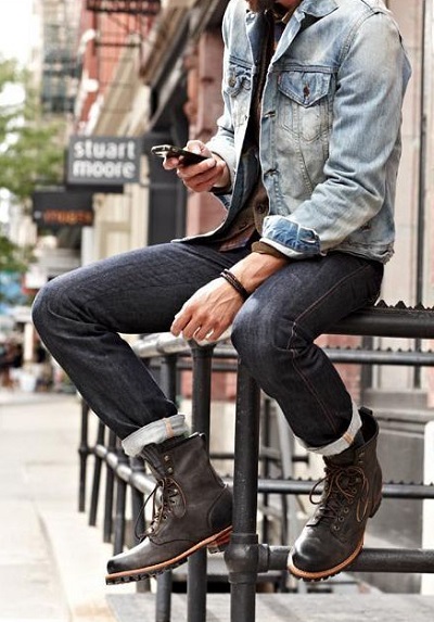 Sapatos errados podem arruinar qualquer look. Se no passado os jeans eram cotados apenas como roupa de trabalho, então ficava bem com botas de cano alto, então, no momento, esses sapatos serão apropriados apenas para militares.