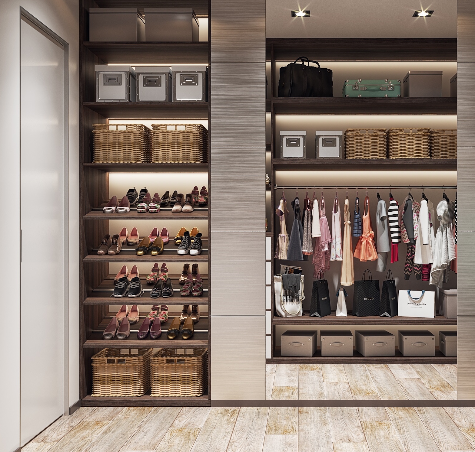 Gavetas e contêineres estendidos serão um ótimo complemento. Compartimentos com cabides também serão necessários.