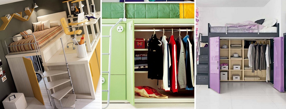 Armários altos são inconvenientes para uma criança pequena, mas para um adolescente é perfeitamente possível fazer prateleiras altas e até mesmo fornecer uma escada conveniente.