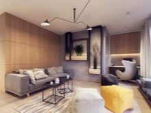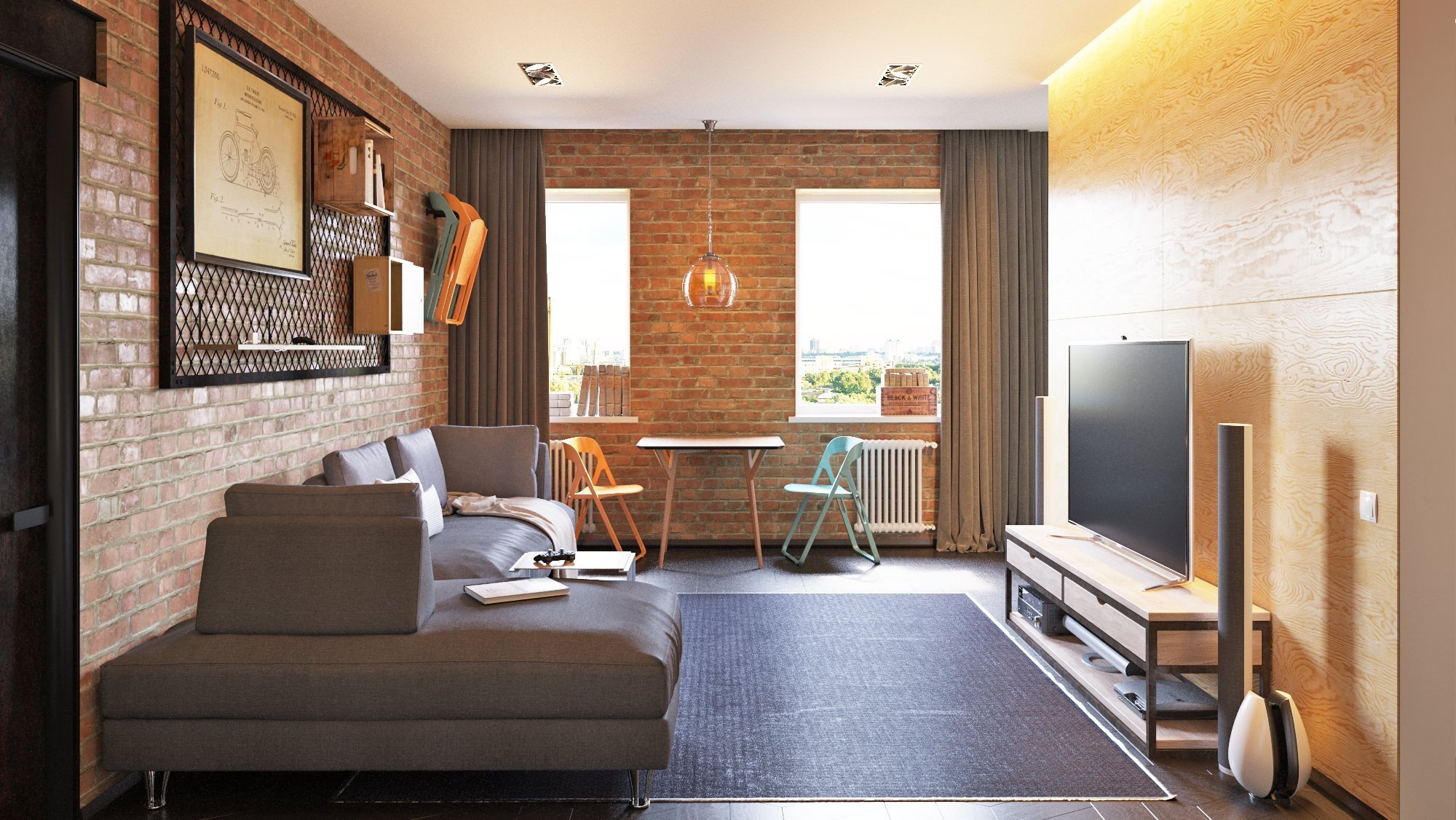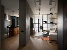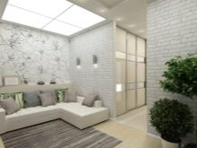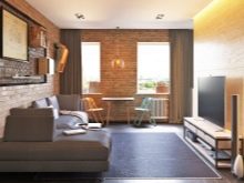 Loft é uma combinação de várias texturas, um jogo luminoso com materiais de qualquer cor. É usado em odnushki com uma área de 48, 50 ou 55 sq. m. As paredes são frequentemente decoradas com tijolos decorativos e gesso de textura incomum. Muita atenção é dada aos materiais de madeira naturais.