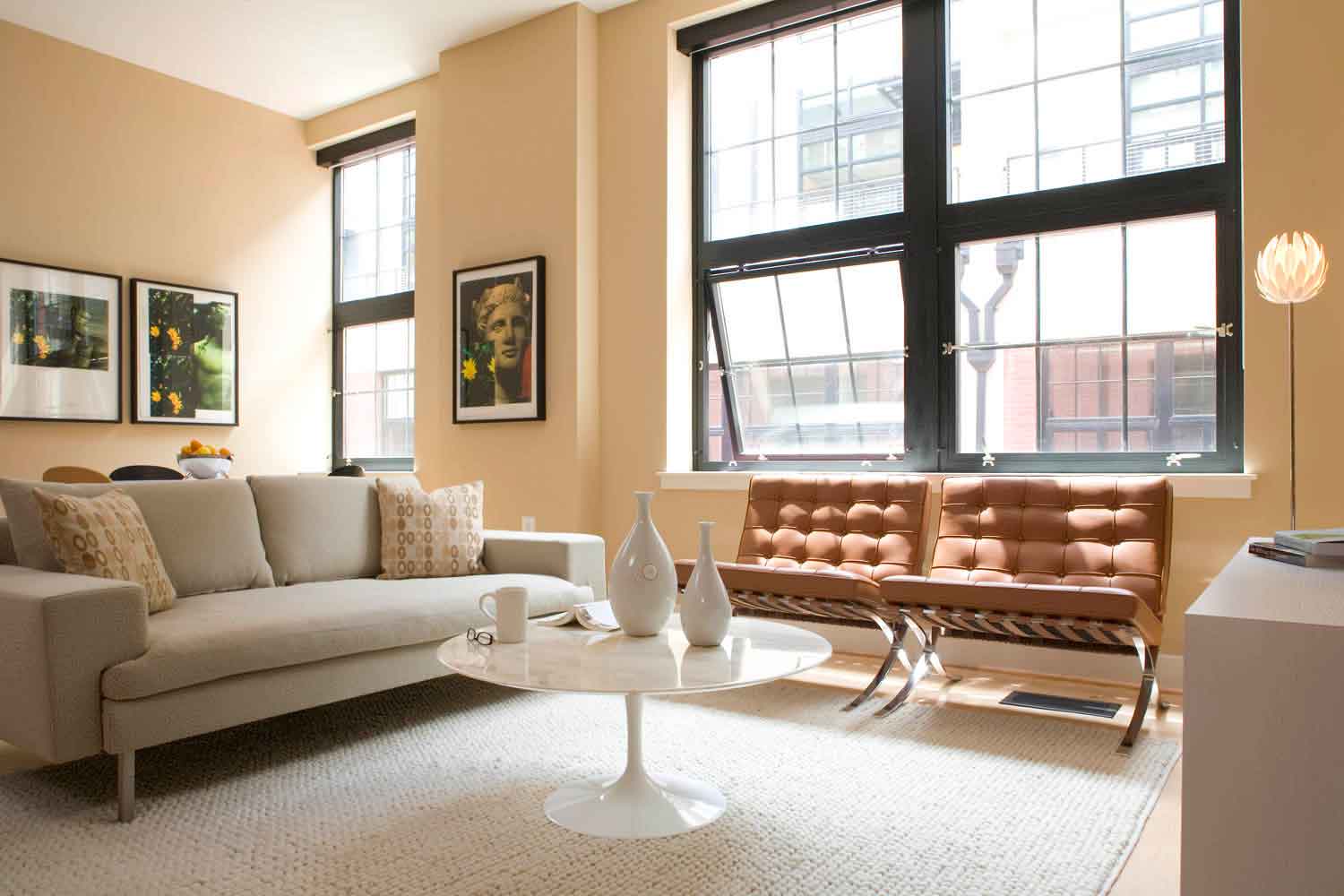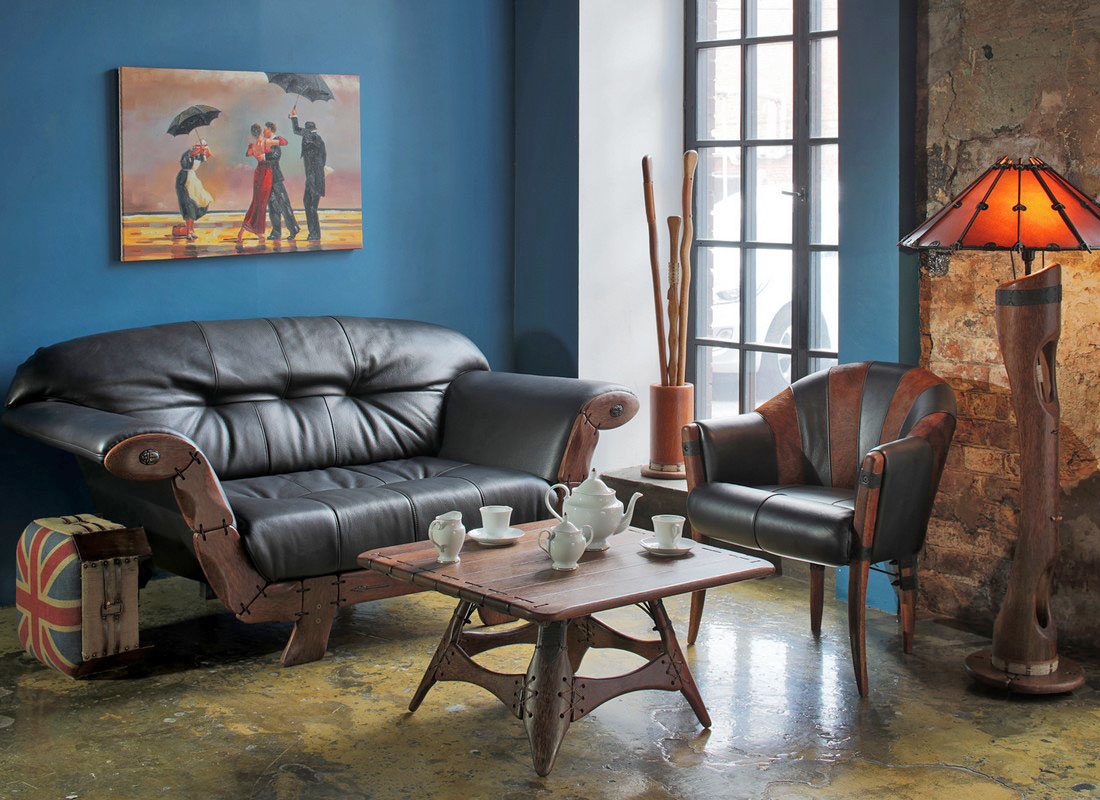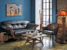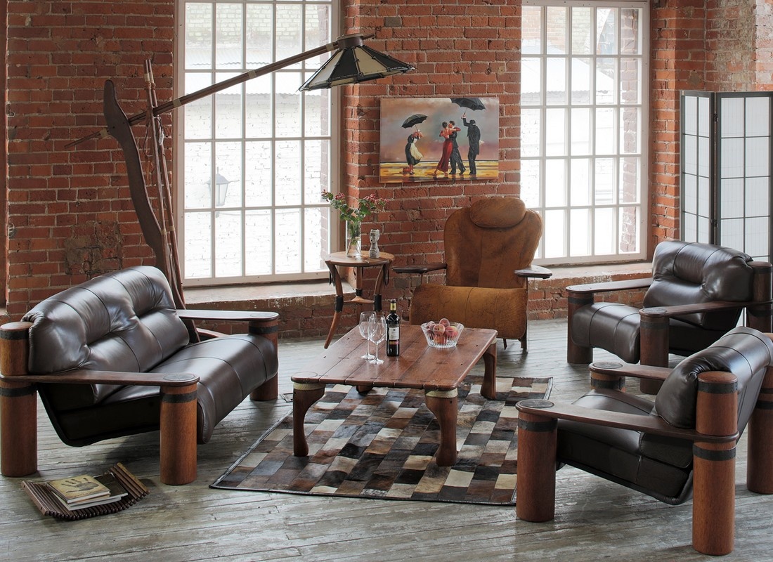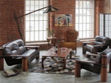 Alguns materiais nunca perdem sua relevância. Isso se aplica totalmente à pele. Os designers modernos estão tentando diluir as cores pastel com detalhes em couro. Especialmente populares são as poltronas de couro, que combinam perfeitamente com o estilo minimalista do loft. Tanto o couro natural quanto o artificial estão na moda.