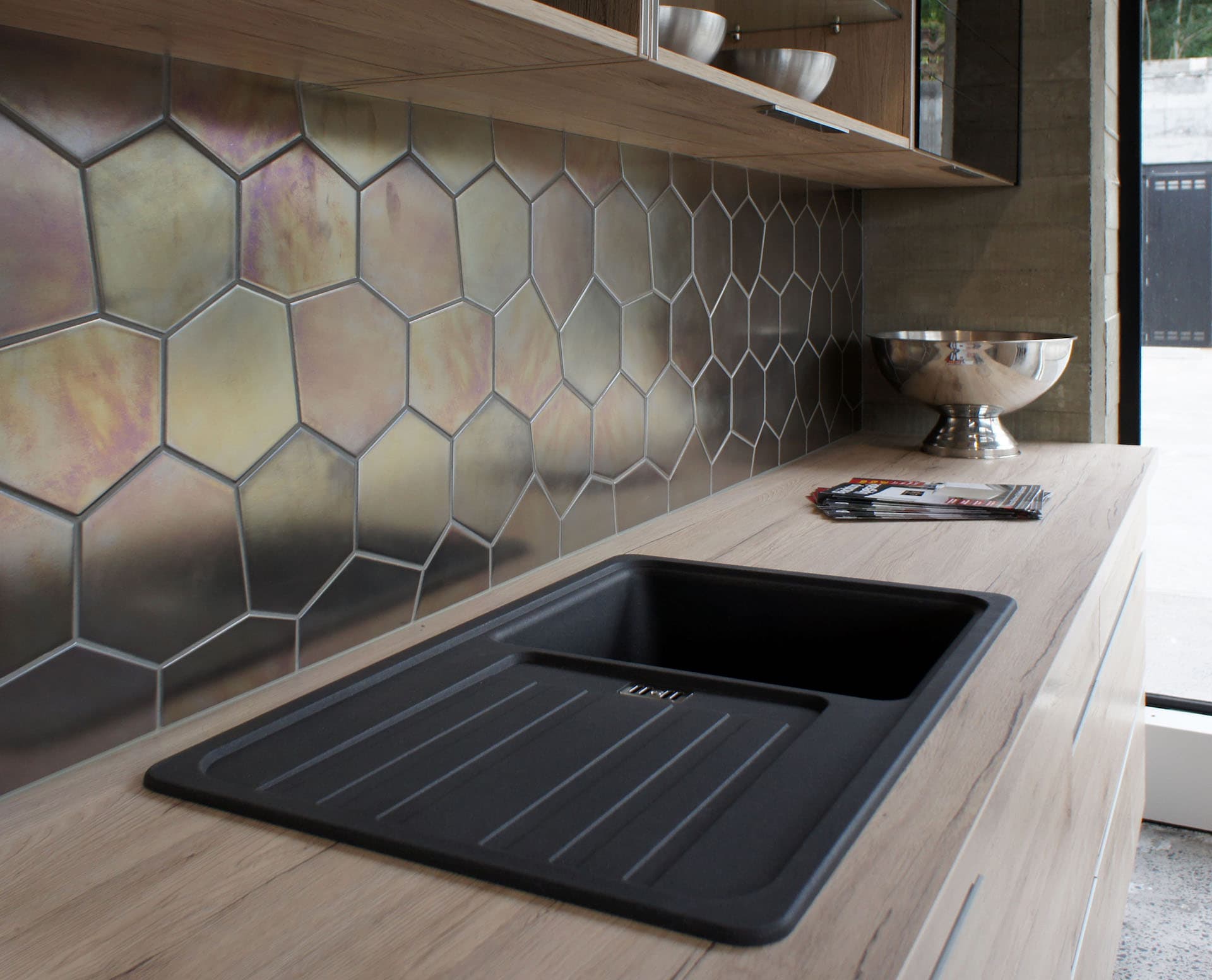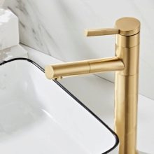 Cada vez mais torneiras e consoles de chuveiro aparecem com uma agradável textura monocromática de metal escovado. As cores podem ser desde bronze requintado e latão brilhante até pátina elegante.