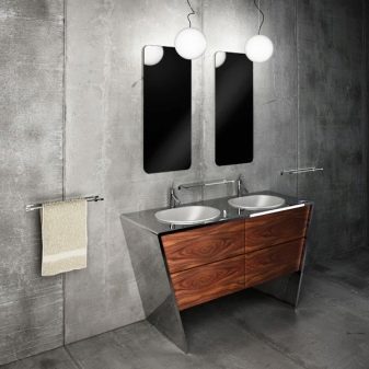 Às vezes, o metal "coexiste" com sucesso no interior com madeira, mármore e granito.
