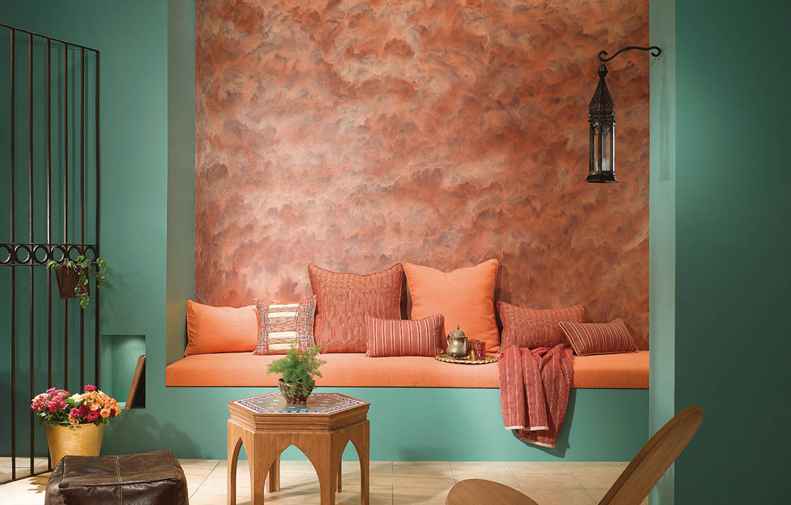 As opções de azul claro, azul claro, rosa ou laranja diluem perfeitamente a tonalidade clara do piso de cerâmica e trabalham para transformar o interior.