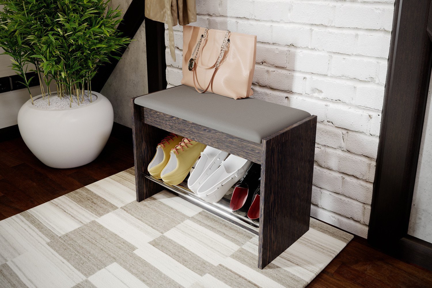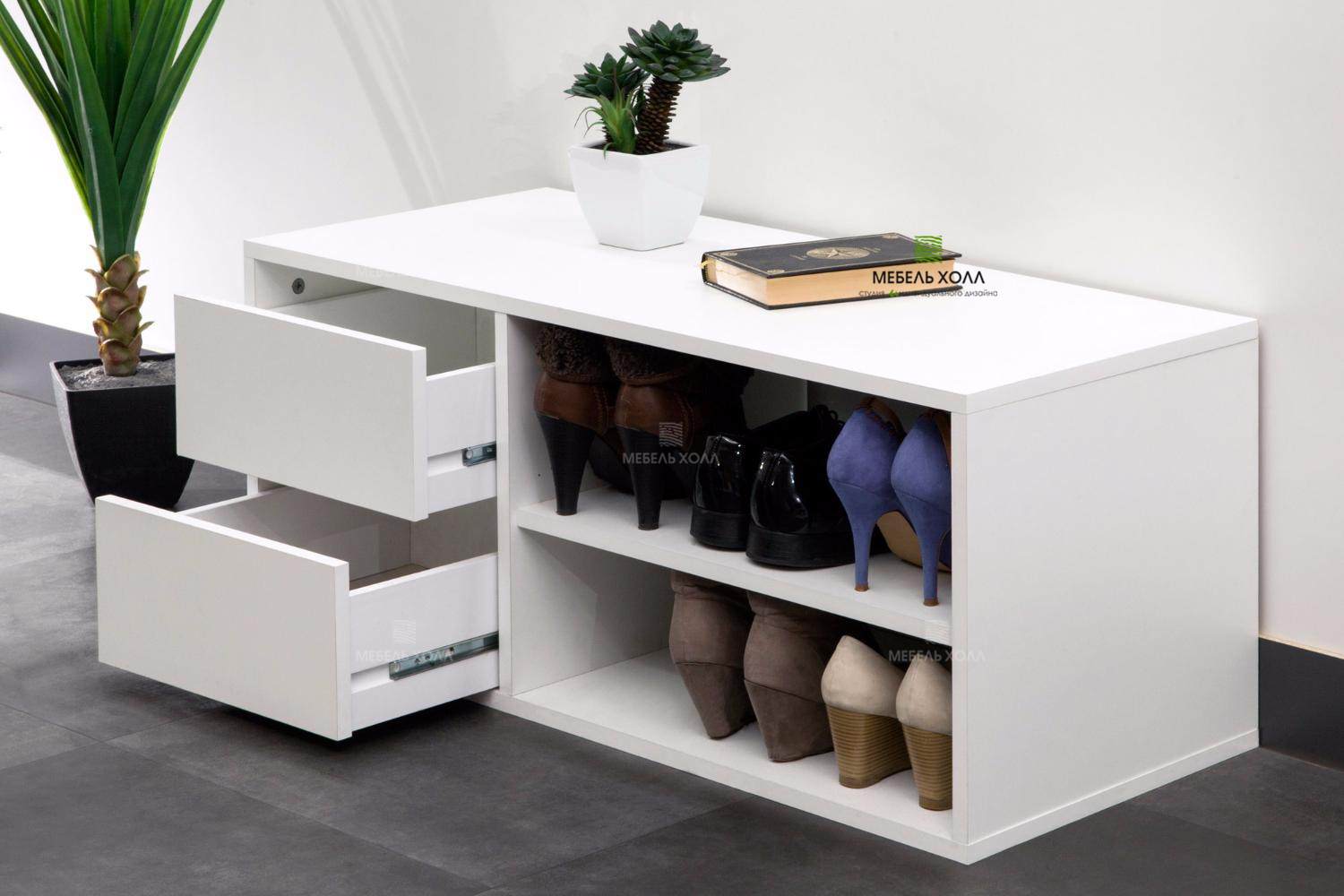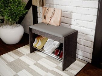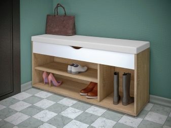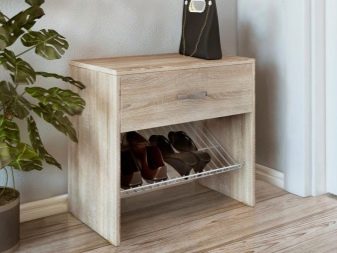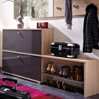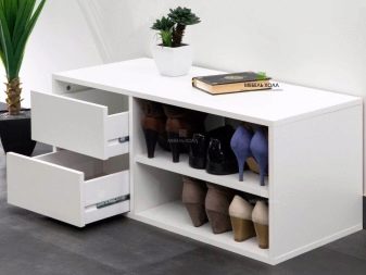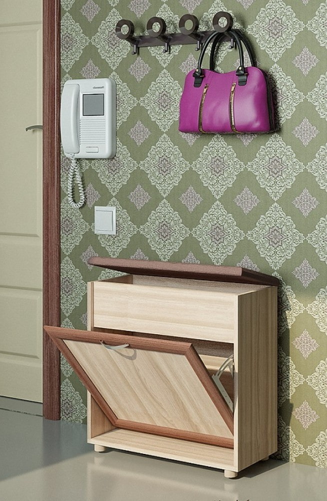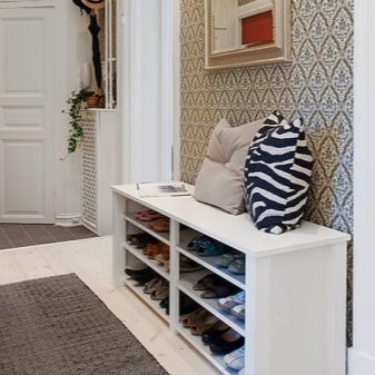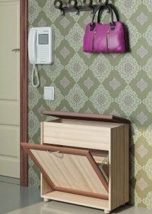 - A principal vantagem de tais designs de móveis é sua funcionalidade. Se houver tal produto no corredor, certamente ficará muito mais limpo e arrumado aqui, pois os sapatos não ficam espalhados pelo chão, pois podem ser facilmente retirados na mesinha de cabeceira.