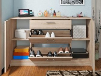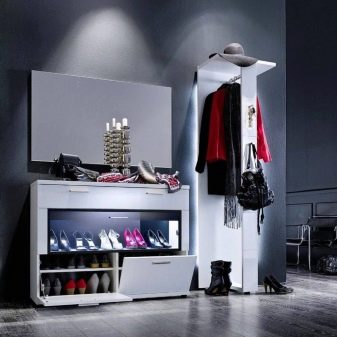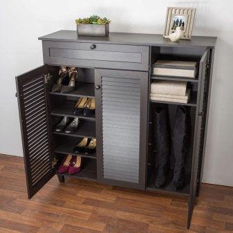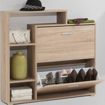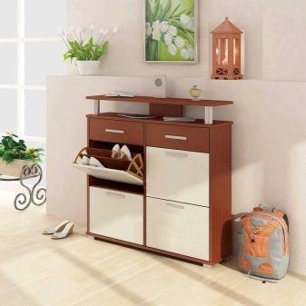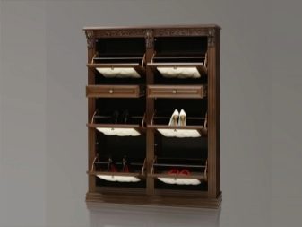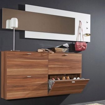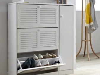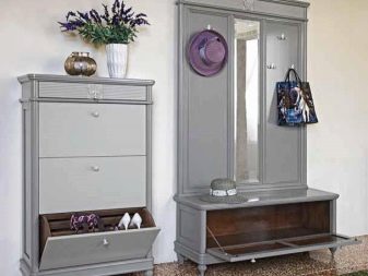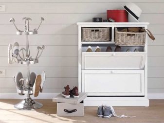 - Vale ressaltar o design atraente dos armários de sapatos. Nas lojas, os consumidores têm a oportunidade de encontrar exemplares maravilhosos decorados em uma variedade de estilos. As cores dos armários elegantes também variam. Você pode escolher uma peça estética e moderna para um interior de absolutamente qualquer estilo.