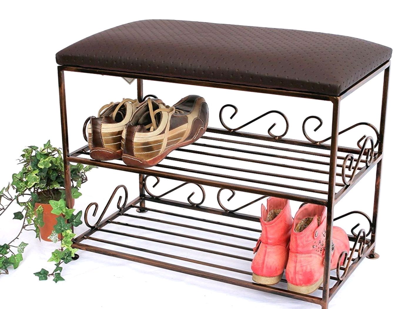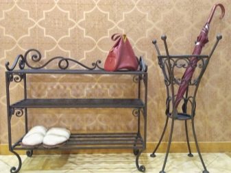 Os porta-sapatos feitos de metal são populares hoje em dia. Esses móveis parecem interessantes e elegantes, mas ao mesmo tempo podem parecer desnecessariamente volumosos. Não é recomendado comprá-lo para corredores de tamanho muito modesto. Os modelos de metal têm um peso impressionante, mas são os mais duráveis, resistentes ao desgaste e práticos.