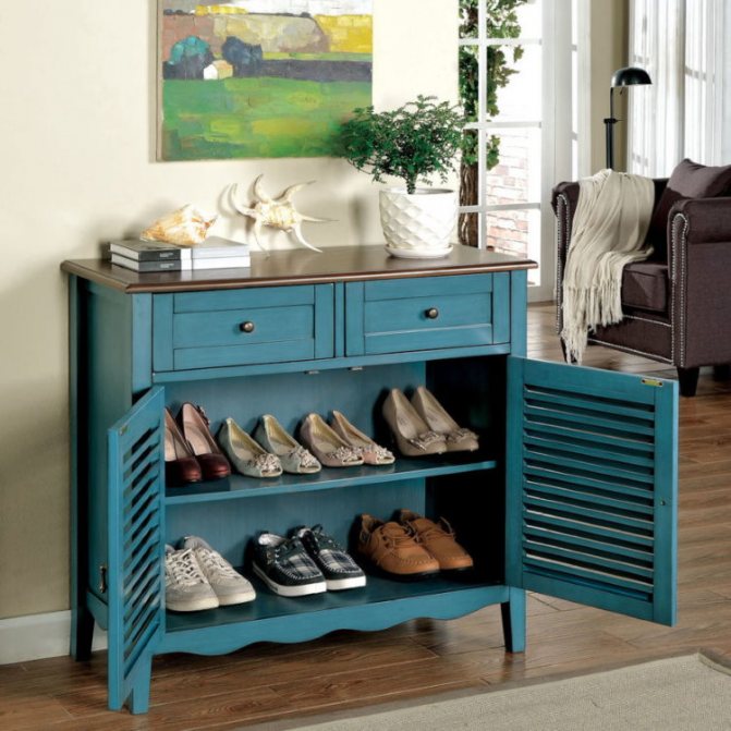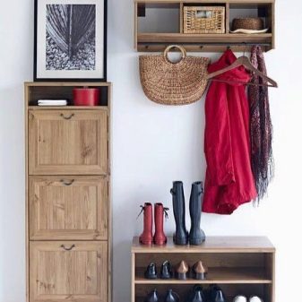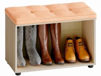 - Os modelos baixos de sapateira têm alturas de 50 e 55 cm. Em espécimes mais altos, não é tão confortável sentar ou trocar de sapatos. O próprio gabinete pode ser largo o suficiente.