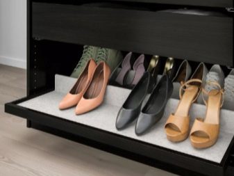 - Se o armário for aberto, os sapatos nele serão bem ventilados, mas ao mesmo tempo haverá acúmulo de poeira nele. Além disso, em tais condições, sapatos e botas não estarão protegidos de possíveis ataques de amigos de quatro patas.