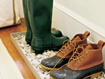 - Os pares de sapatos, guardados para armazenamento em um armário, estão bem protegidos de fatores externos negativos. A poluição excessiva das ruas (areia, seixos, etc.), que é muito pequena no corredor, não se acumula nos produtos. Além disso, se os sapatos estiverem escondidos em um armário fechado, os animais não poderão alcançá-los.