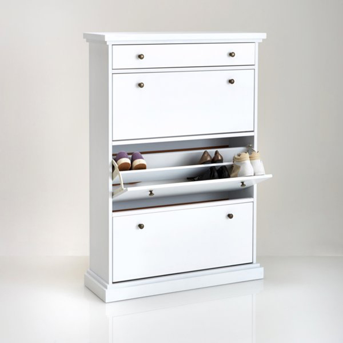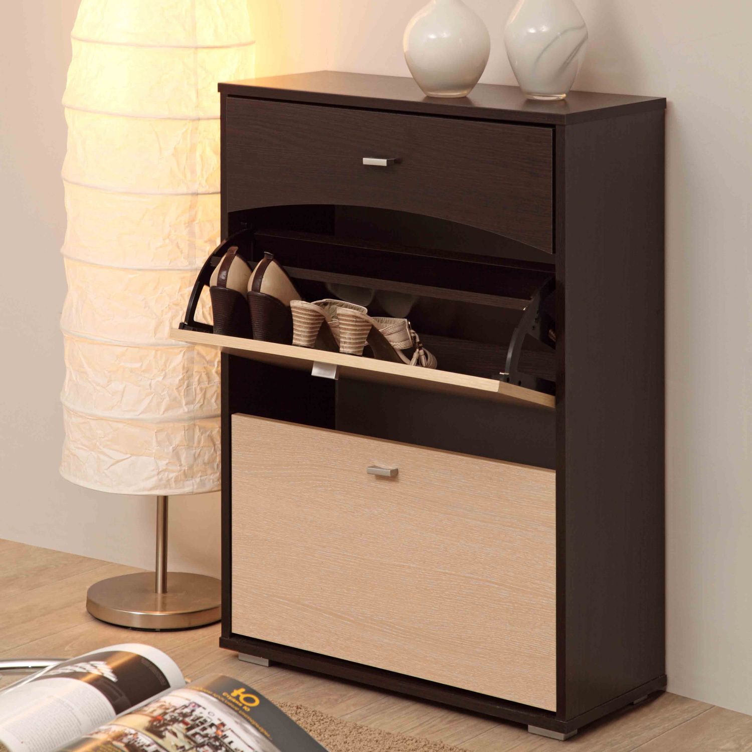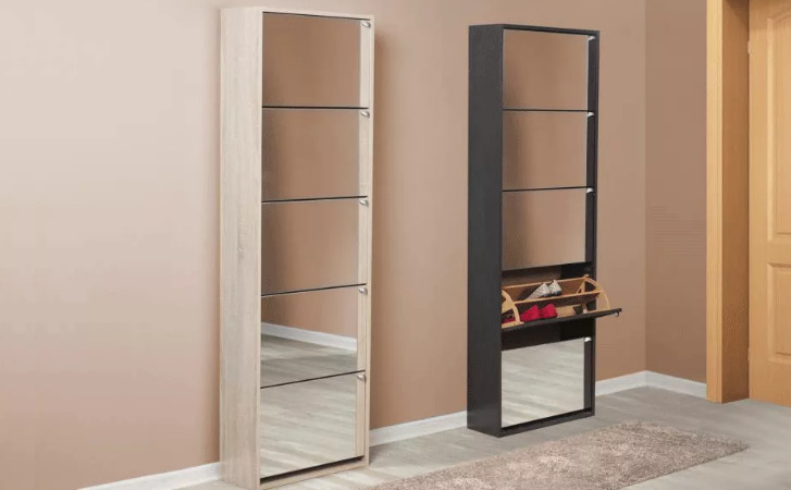 Os tamanhos dos gabinetes de sapatos também variam. Existem modelos estreitos e largos de vários tamanhos.