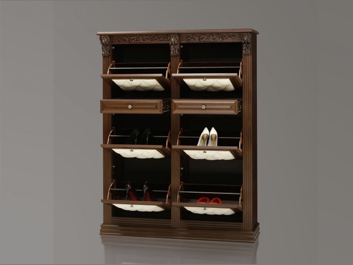 Hoje, nas lojas de móveis, literalmente os olhos saltam da enorme variedade de produtos em oferta. Os grandes fabricantes produzem muitos gabinetes de sapatos excelentes, que diferem em tamanho, design e estrutura interna.
