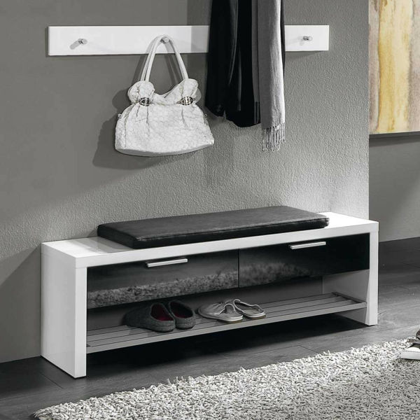 - Devido ao fato de o hall de entrada ser uma passagem na área de entrada, muitas vezes o pó se acumula aqui em grandes quantidades. O aparecimento de sujeira nos móveis não pode ser evitado. Isso leva ao fato de que a limpeza da sapateira deve ser mantida constantemente por meio de limpeza úmida. Com frequência, os proprietários são forçados a encomendar produtos de cores claras feitos de materiais de marca.