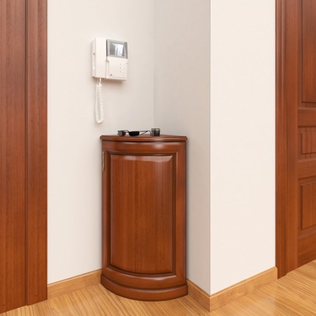 - Canto. Colocado em um canto livre da sala. Parece elegante e original, podendo economizar significativamente o espaço livre no corredor. Perfeito para espaços muito pequenos.