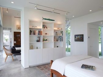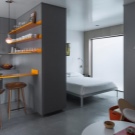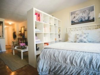 - Divisória de gesso cartonado com nichos ou prateleiras - uma opção muito conveniente em espaços confinados. Nesses nichos, você pode colocar livros, elementos decorativos ou adicionar diversos utensílios domésticos.