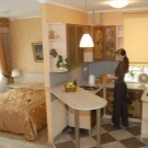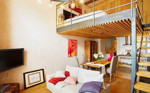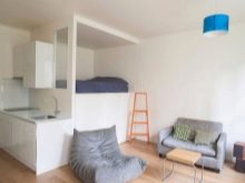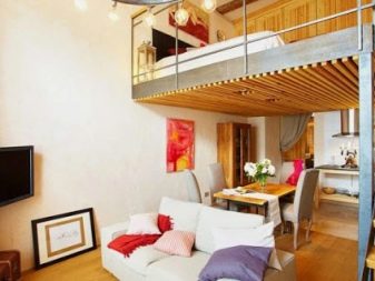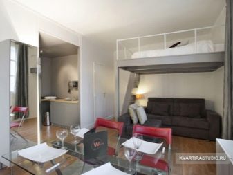 Em muitos países europeus, é costume usar projetos uma cama de teto em um nicho construído acima da cozinha compacta ou área de trabalho. Isto permite equipar um hall completo ou um quarto para crianças, para evitar a penetração de odores desagradáveis da cozinha e para manter o conforto de um quarto de dormir.