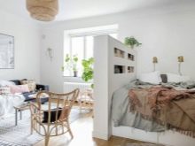 - escandinavo, que foi criado especialmente para pequenos espaços. Combina a maior funcionalidade possível com um efeito estético. A abundância de verde e luz adicionará entusiasmo ao estilo.
