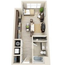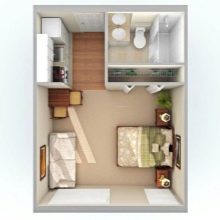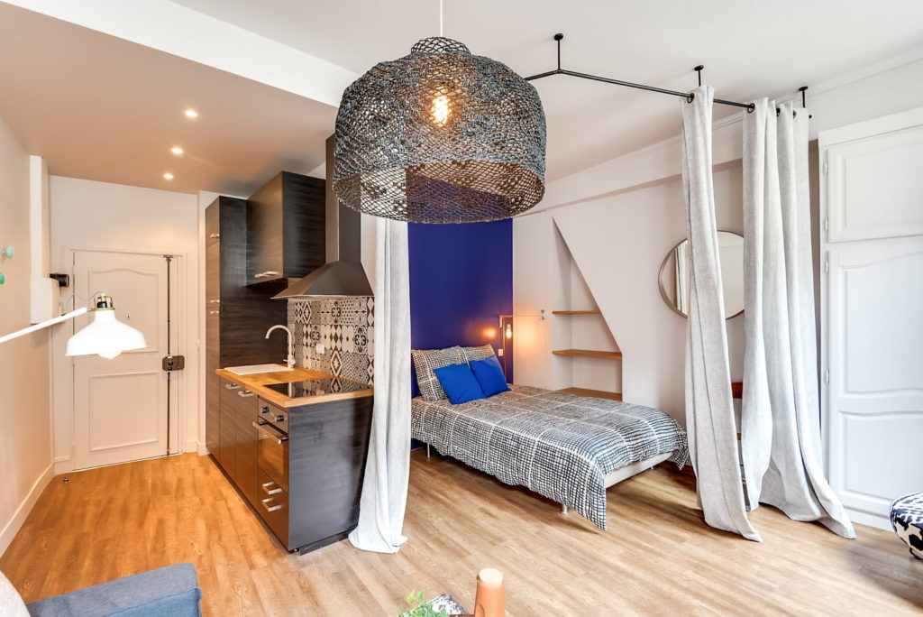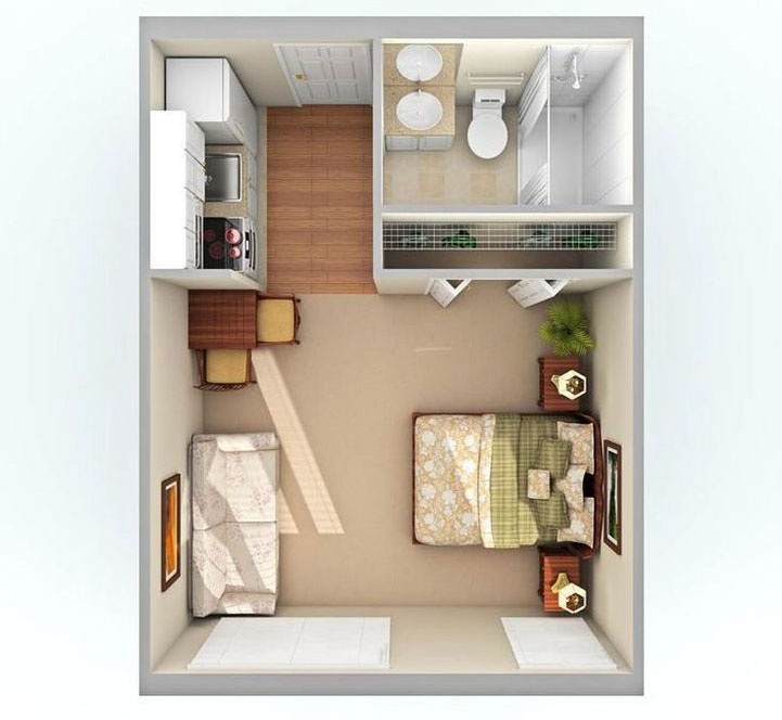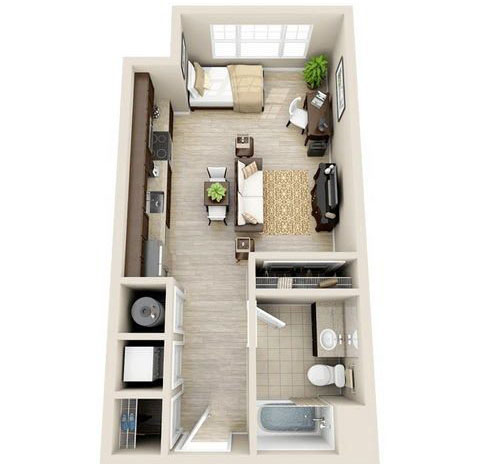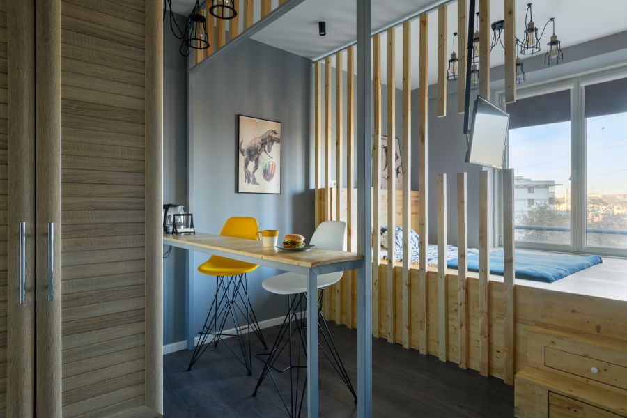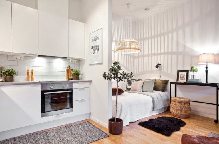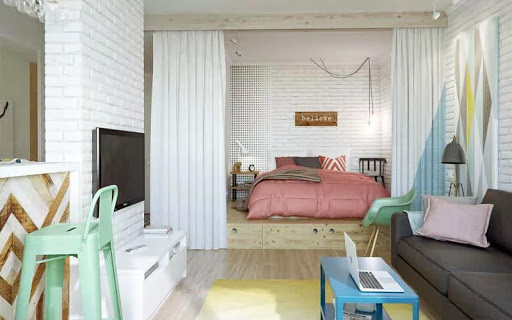 Os pequenos estúdios podem usar diferentes estilos de design de interiores.