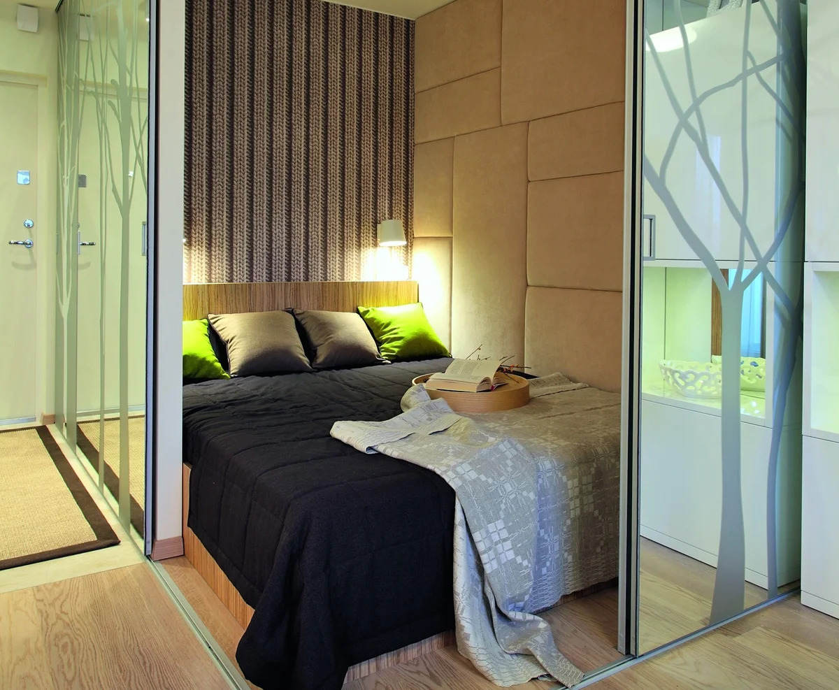 - Portas deslizantes leves conveniente porque você pode aumentar instantaneamente o espaço da área de dormir, se necessário.