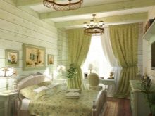 Um quarto de estilo provençal delicado e leve envolve o uso de verdes quentes combinados com tons de branco, azul, amarelo e rosa. A abundância de luz é a principal característica de uma sala neste estilo, então cortinas pesadas não vão funcionar. Cortinas de algodão com ganchos volumosos e cortinas de tule claro ficarão ótimas.