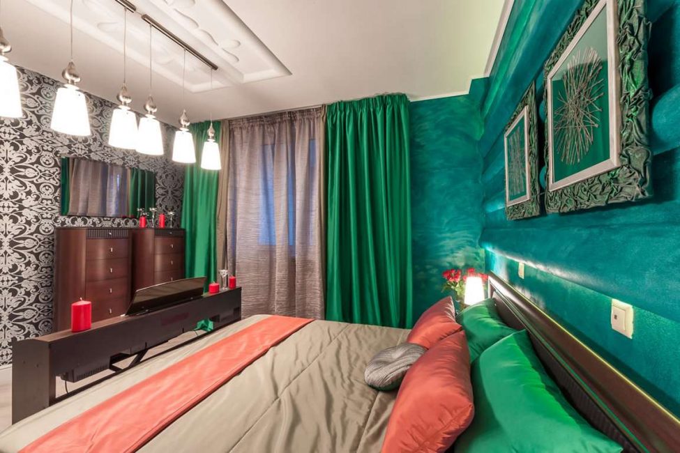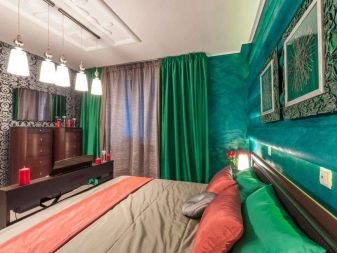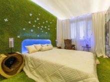 A escolha da decoração do quarto depende de muitos fatores, de qualquer forma, deve haver pouco, porque se trata, antes de mais nada, de um local de descanso que não deve ser jogado fora. Na escolha das tonalidades, é necessário basear-se na cor dos restantes elementos da divisão. - nos quartos cinza e preto e branco, vale a pena acrescentar detalhes claros, e nos quartos onde o verde é a cor principal, vale a pena usar outros tons que combinem.