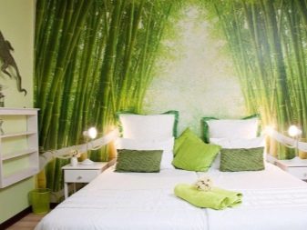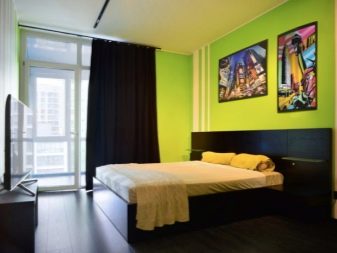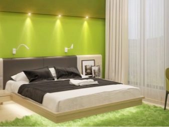 O verde combina bem com o branco, o preto e o castanho, que são as cores base deste estilo. Uma rica cor verde-amarelada ou um tom de verde-selva se tornará o principal em um quarto minimalista. Distingue-se pela sua simplicidade e contenção, o que pode deixar as pessoas criativas muito entediadas, e os elementos verdes brilhantes de móveis ou paredes irão claramente revigorar. Você pode se concentrar na decoração - plantas vivas, pinturas ricas e leves ou lâmpadas incomuns, mas simples.
