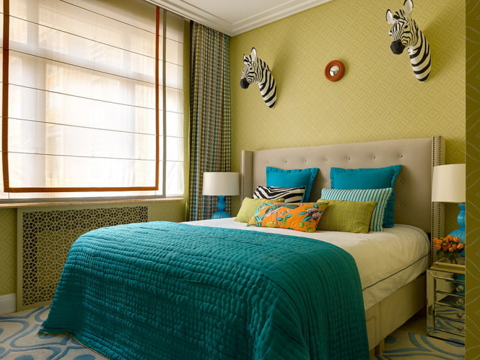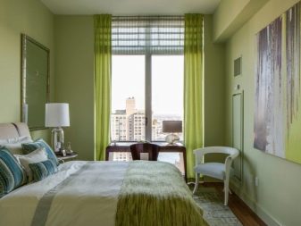 O verde é uma das cores mais eficazes em psicoterapia, pois tem um efeito positivo no estado psicoemocional. Os seguintes tons podem ser usados no interior do quarto.