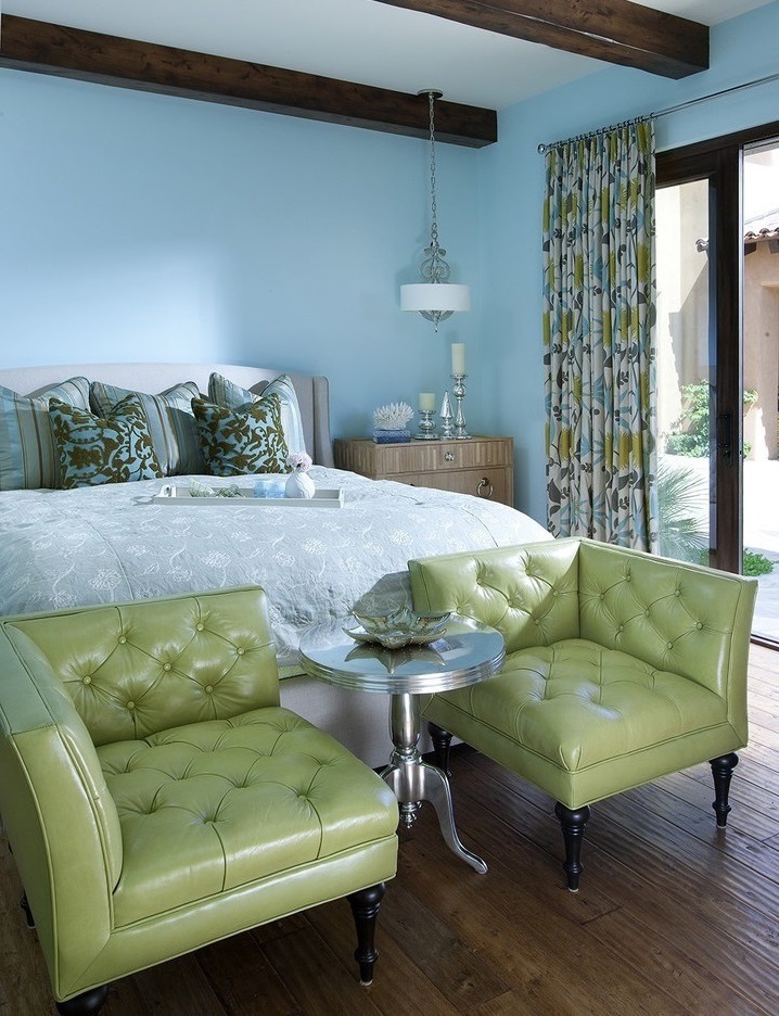 - No quarto, decorado em tons de azul - água-marinha ou azul claro, convém usar um sofá verde-amarelo.