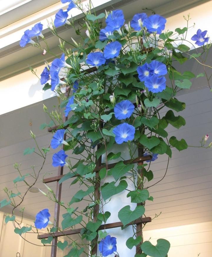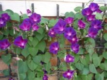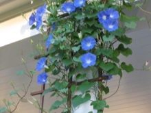Glória da manhã. Este anual cresce a partir de junho até o primeiro clima frio de outono. Na maioria das vezes, é usado para jardinagem vertical da varanda. As flores desta planta são grandes. Eles geralmente são roxos, azuis ou brancos. A rega dessas plantas deve ser feita a cada 3-4 dias.