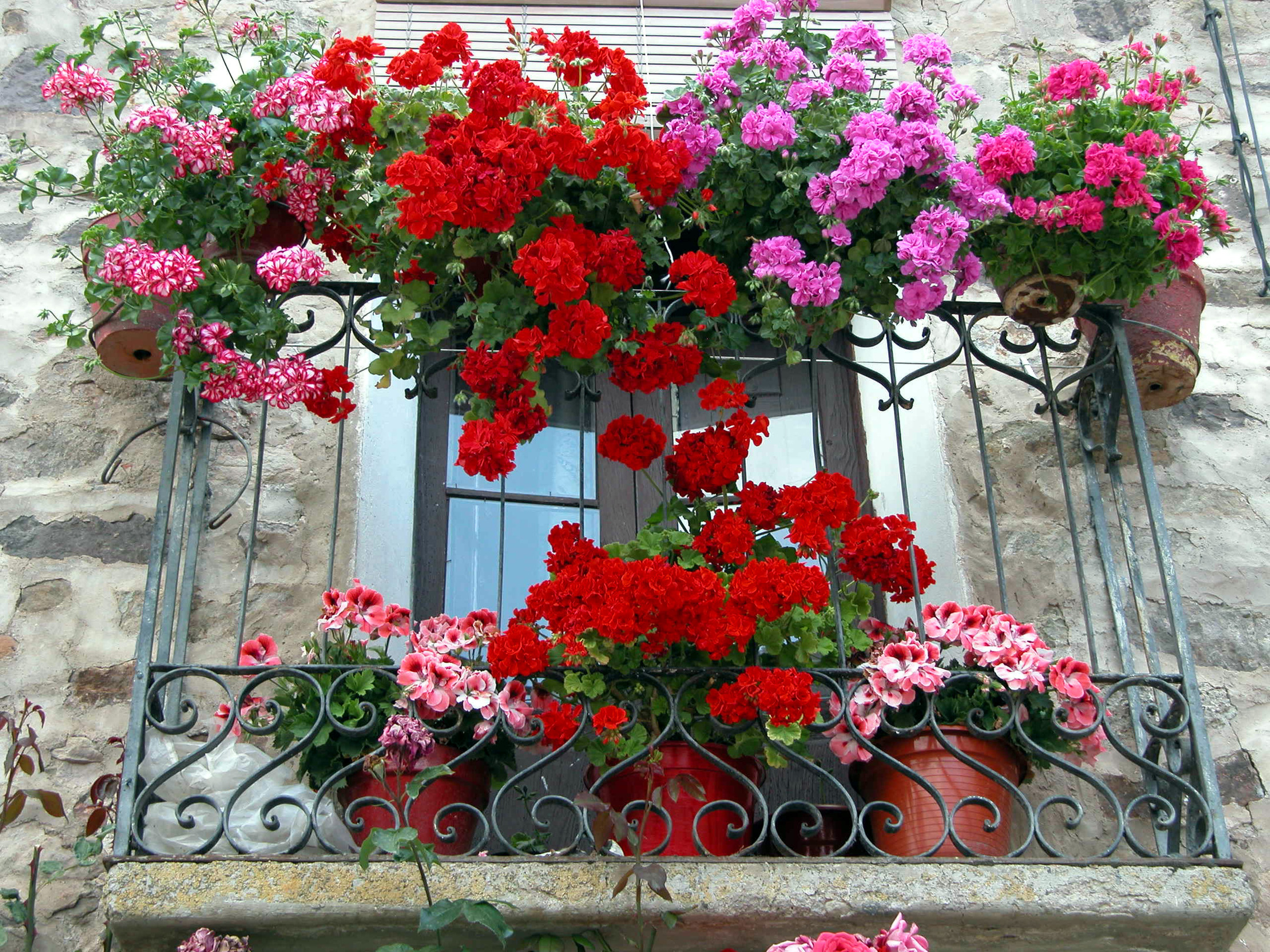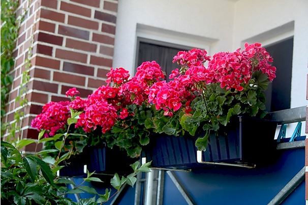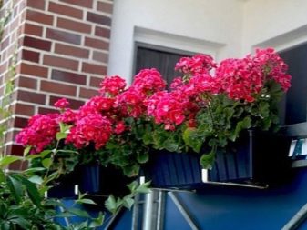 É melhor cultivar pelargônio em vasos retangulares especiais que são fixados nas grades da varanda.