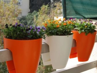 As características de design da varanda também dependem do vaso de flores escolhido. Você pode usar diferentes tipos de recipientes.