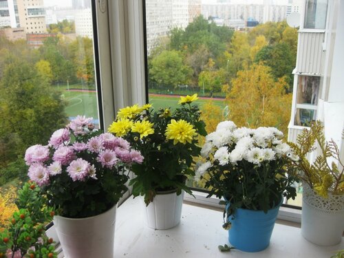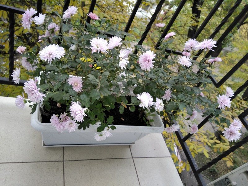 - Crisântemo. Esta planta perene se desenvolve tanto em canteiros de flores abertos quanto em varandas. Começa a florescer no final do verão. Flores em forma de bola ficam ótimas em vasos grandes.