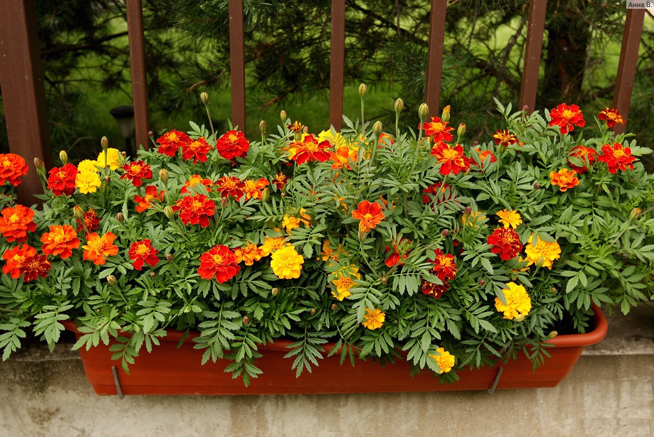 Para este tipo de jardim de flores, é melhor usar cravo ou malmequer.