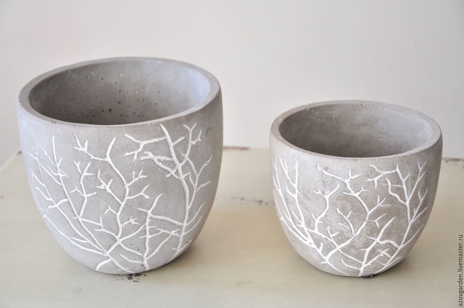 Tanques de concreto. Em tais tigelas, via de regra, são plantadas composições completas de várias plantas. Eles geralmente são instalados contra uma parede ou em um canto. Em alguns casos, essas tigelas enormes são decoradas adicionalmente.