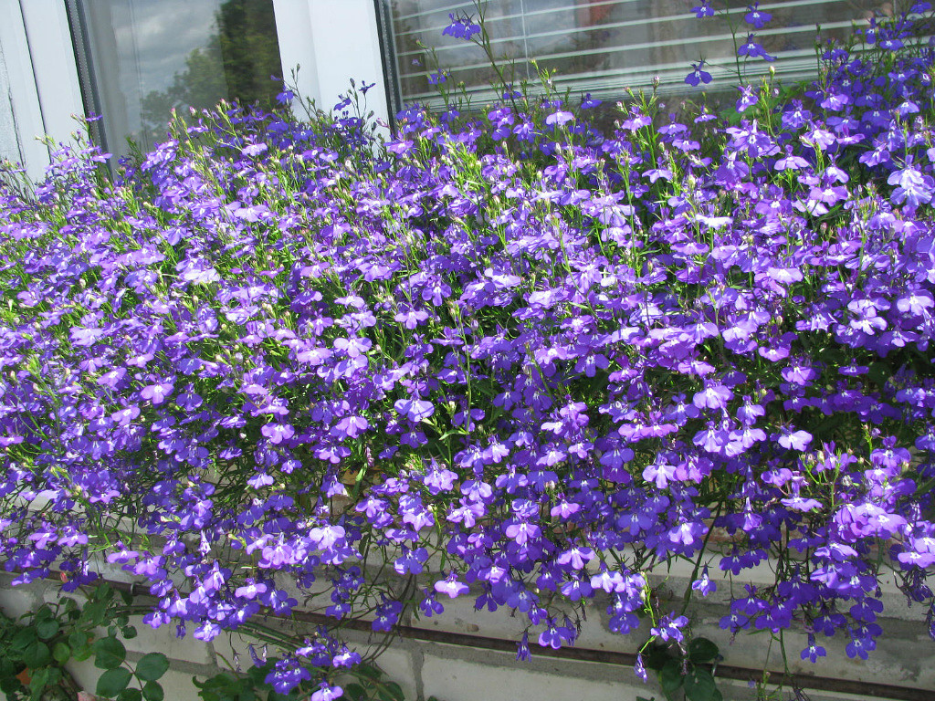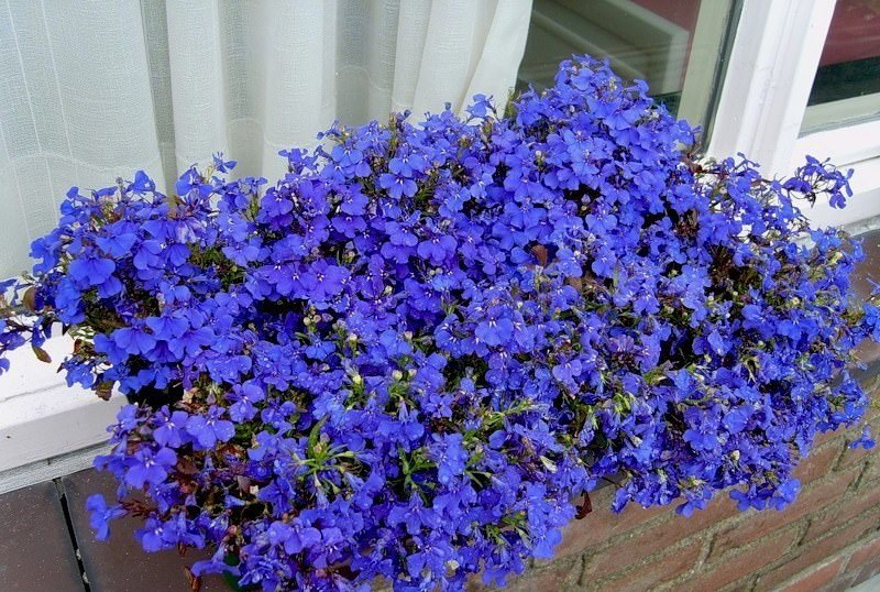 - Lobelia. É uma planta perene, mas a maioria dos jardineiros a cultiva durante um ano. Ela floresce do final da primavera ao início do outono. Na varanda, você pode plantar tanto lobélia ampelosa quanto arbusto. Regue esta planta com moderação.